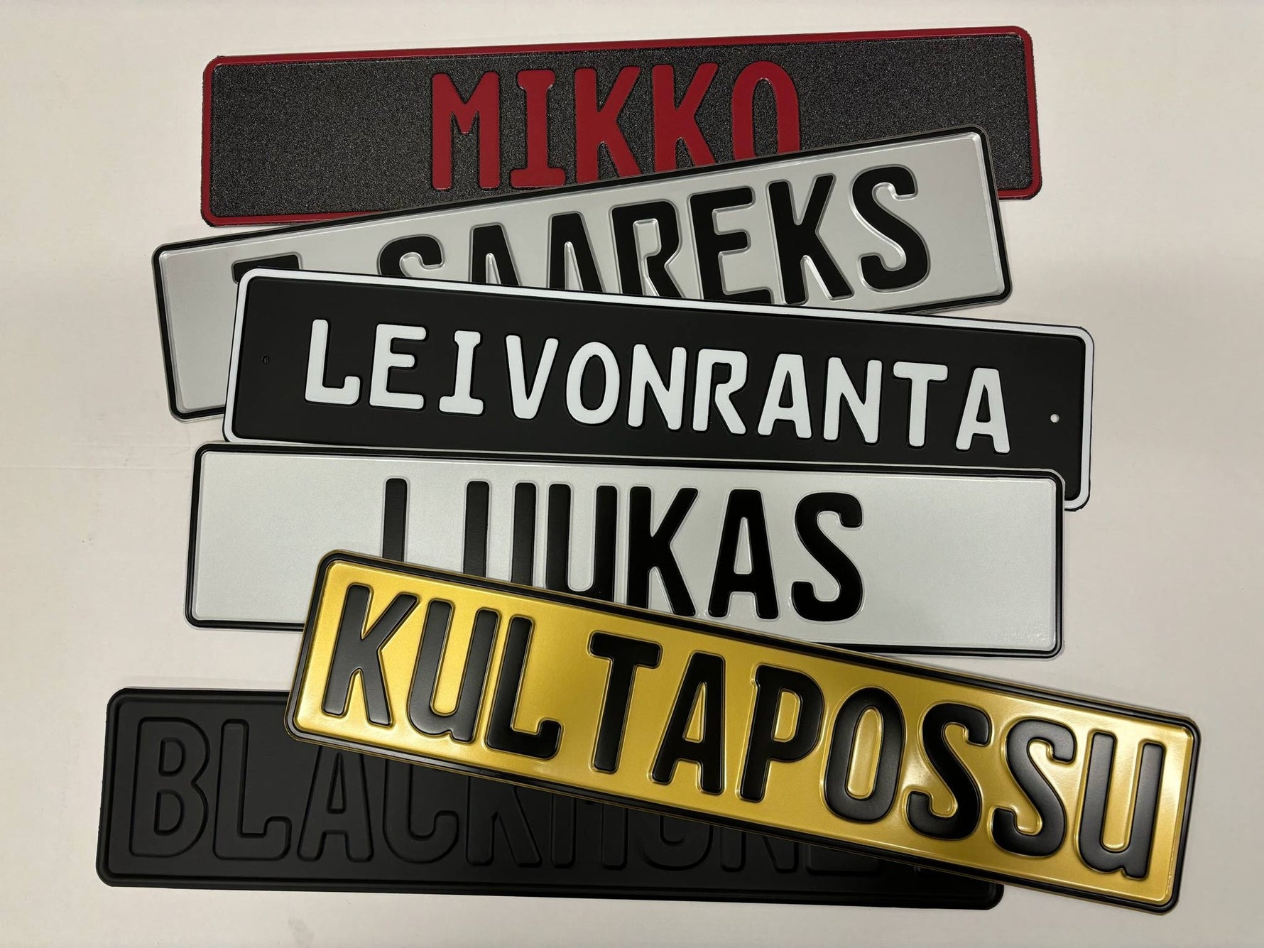 Kyltti omalla tekstillä sopii mainiosti sisustuskäyttöön sekä nimeämään rakennusten nimi vaikkapa mökillä. Erityisen suosittuja kilpiä asiakkaidemme keskuudessa ovat olleet mattamusta sekä hiilikuitujäljitelmä.